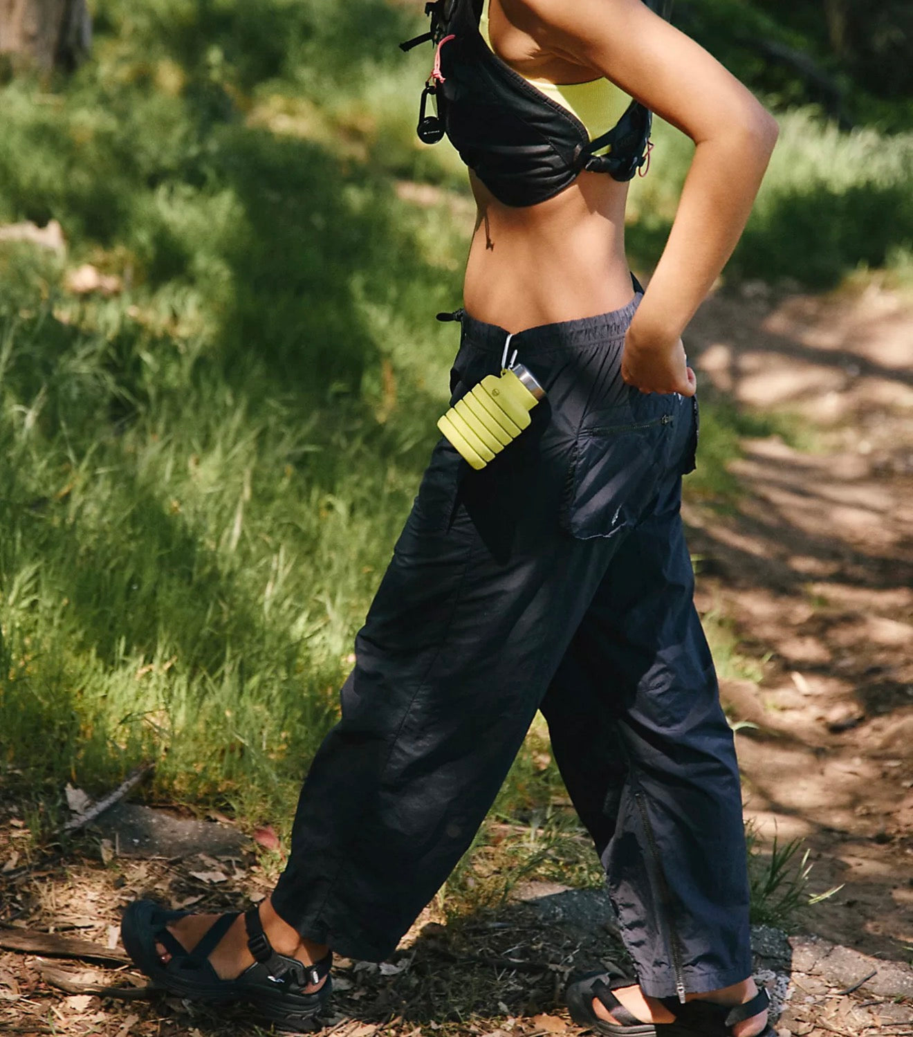 Designed for hiking trips and outdoor adventures these lightweight pants are featured in a water resistant fabrication with cargo inspired pockets and an elastic waistband. Relaxed fit mid rise straight leg style. These have a smart elastic waistband with adjustable bungee cord detail for your water bottle.