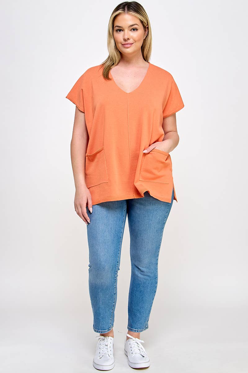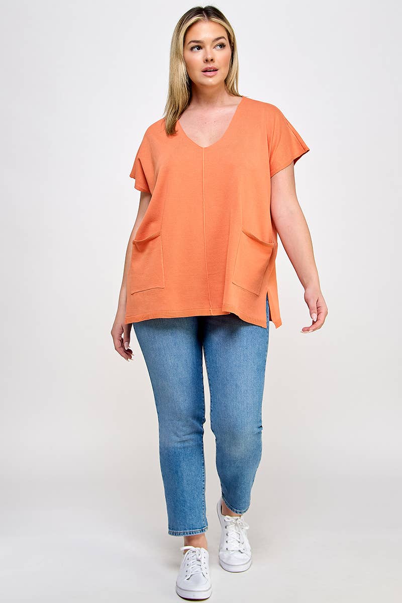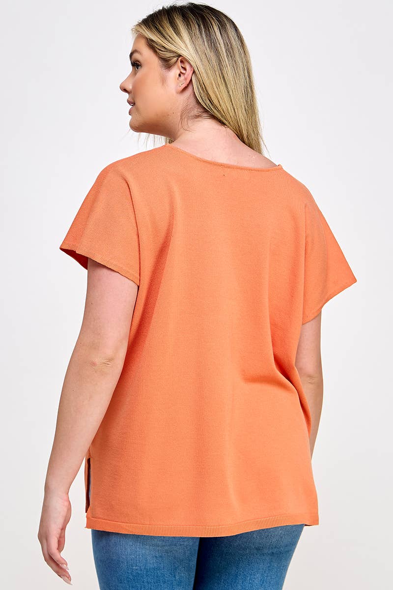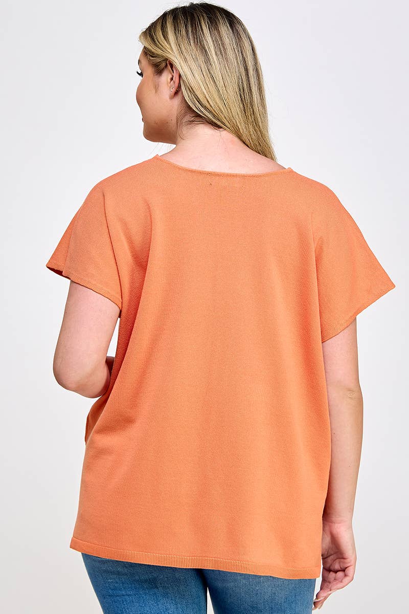 Plus Size Short Sleeve Sweater Knit Top With Pockets CL2473P